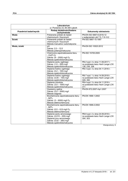 W dniu 16.11.2018 w naszym Laboratorium został przeprowadzony audit w nadzorze PCA. PCA monitoruje działalność akredytowanych laboratoriów, w celu upewnienia się, że stale spełniają one wymagania akredytacyjne oraz warunki akredytacji wynikające z Kontraktu z akredytowanym podmiotem i dokumentów z nim związanych.Otrzymany raport z oceny nr A-2000-2018 potwierdził, że Laboratorium spełnia wymagania akredytacyjne określone w normie PN-EN 17025:2005+Ap1:2007 oraz wymagania specyficzne.W wyniku pozytywnej weryfikacji PCA został również wydany nowy zakres akredytacji - wydanie 6 z dnia 27.11.2018. Laboratorium wniosło kilka istotnych zmian do zakresu, z którymi można zapoznać się w zakładce Laboratorium – Aktualności.W następnym roku Laboratorium zmierzy się z nowym wyzwaniem, czyli wdrożeniem najnowszej normy PN-EN ISO/IEC 17025:2018-02. Norma ta jest normą odniesienia, na której oparty jest cały system zarządzania Laboratorium. Czeka nas okres wzmożonej pracy przy przechodzeniu na nową normę, co zostanie ocenione podczas kolejnego auditu PCA w listopadzie 2019.