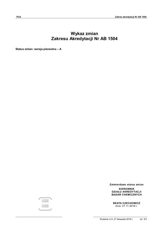 Audit PCA w laboratorium i wydanie nowego zakresu akredytacji.