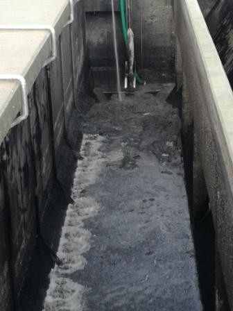 Na Oczyszczalni Ścieków zakończono prace związane z czyszczeniem komory piaskownika oraz konserwacją i naprawą urządzeń pomocniczych. Z powodu dużej ilości zanieczyszczeń włóknistych (ścierki, chusteczki nawilżane itp.) dopływających w ściekach do oczyszczalni, nastąpiło zatkanie odpływu z piaskownika. W konsekwencji tego zdarzenia, na dnie zbiornika zaległa gruba warstwa masy organiczno-piaskowej i unieruchomiony został zgarniacz piasku. Przy użyciu wozu specjalistycznego firmy ASSMANN będącego na wyposażeniu MPWiK Lębork usunięto z komory około 60 m3 osadów. Prace te zostały wykonane przy czynnym zaangażowaniu pracowników Oczyszczalni Ścieków. W ramach prowadzonych robót, wymienione zostały również elementy robocze zgarniacza piasku oraz silnik napędowy.