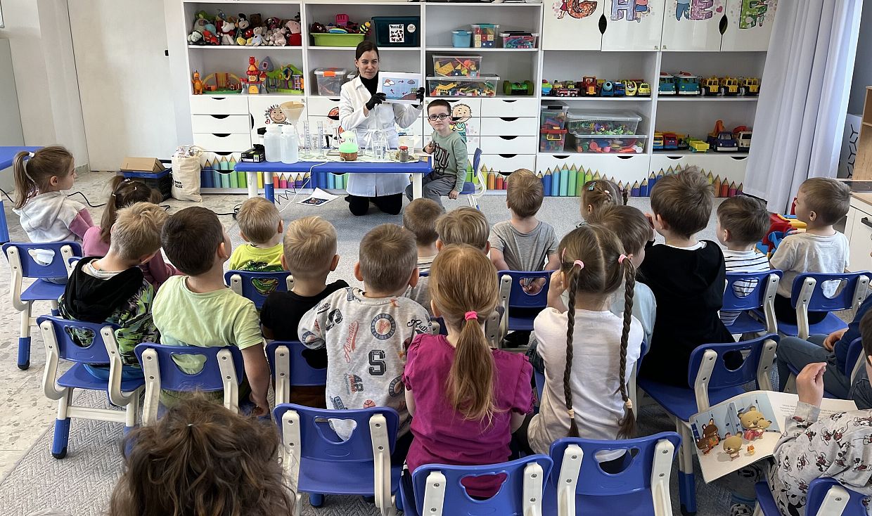 W trakcie zajęć najmłodsi mieli okazję poszerzyć swoją wiedzę na temat znaczenia wody w codziennym życiu człowieka. Dzieci dowiedziały się m.in. skąd pochodzi woda obecna na naszej planecie oraz jak wygląda jej obieg w przyrodzie. Uczestnicy z zaangażowaniem wzięli udział w rozmowie na temat funkcjonowania systemu wodociągowego w Lęborku – od pozyskiwania wody, przez jej uzdatnianie, po dystrybucję. Omówiono również praktyczne sposoby racjonalnego gospodarowania wodą. Największe zainteresowanie wśród przedszkolaków wzbudziły widowiskowe eksperymenty, które w przystępny i atrakcyjny sposób przybliżyły im właściwości fizyczne wody oraz jej znaczenie dla życia na Ziemi. Dzięki tej inicjatywie dzieci zdobyły cenne, podstawowe informacje dotyczące ochrony zasobów wodnych, uświadamiając sobie, że woda jest dobrem niezbędnym do istnienia wszelkich form życia.