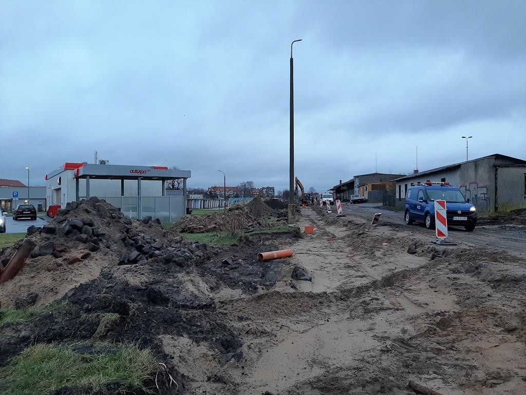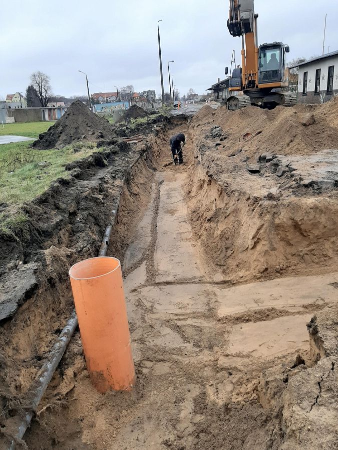 Trwają prace związane z inwestycją Lęborski Węzeł Przesiadkowy. Prace polegają na wymianie kanalizacji wraz z infrastrukturą w ul. Dworcowej.