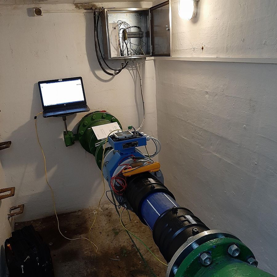 Ilość pobranej wody na ujęciu artezyjskim w Okalicach jest opomiarowana bezpośrednio po wydobyciu w odległości około 13 km od Lęborka. Drugi pomiar dokonuje się, w mieście, przed stacją uzdatniania wody, w komorze pomiarowej gdzie zamontowany jest przepływomierz. Aby zapewnić prawidłowy pomiar przepływu wody z ujęcia artezyjskiego konieczny okazał się montaż nowego przepływomierza indukcyjnego wraz z okablowaniem. Ponadto wymieniono skorodowany odcinek rurociągu.