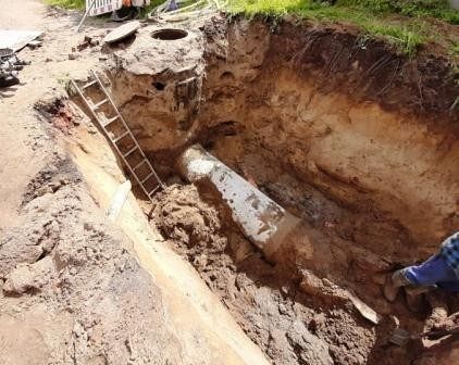 Wymieniono skorodowany odcinek kanału ø 600 w ul. A. Gierymskiego. Jest to przewód odprowadzający ścieki z osiedla Wschód, LPŚ Leśna oraz Mostów.